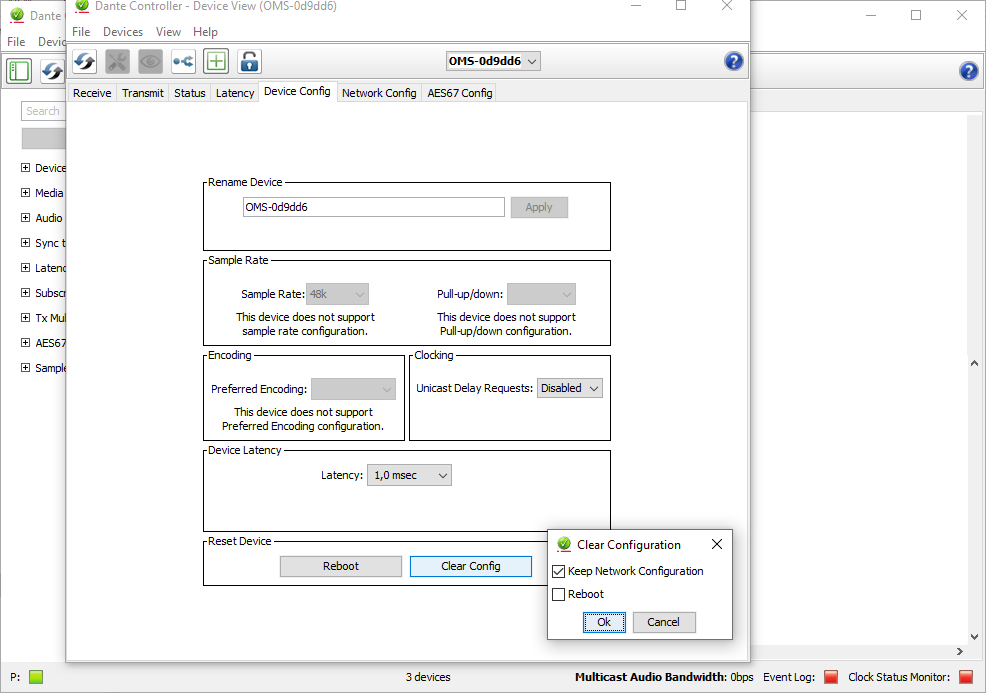 Factory default In general, resets and Factory Defaults for any OMNEO device can be done with Dante Controller. To do a Factory default including or excluding network settings via DANTE Controller: Double click the unit in Dante Controller Select the ...